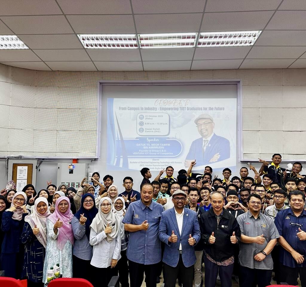 The event, titled “CEO@BET: From Campus to Industry – Empowering TVET Graduates for the Future,” was organised by the Department of Electrical Engineering (JKE) through the Bachelor of Electrical Engineering Technology with Honours (BET) programme.