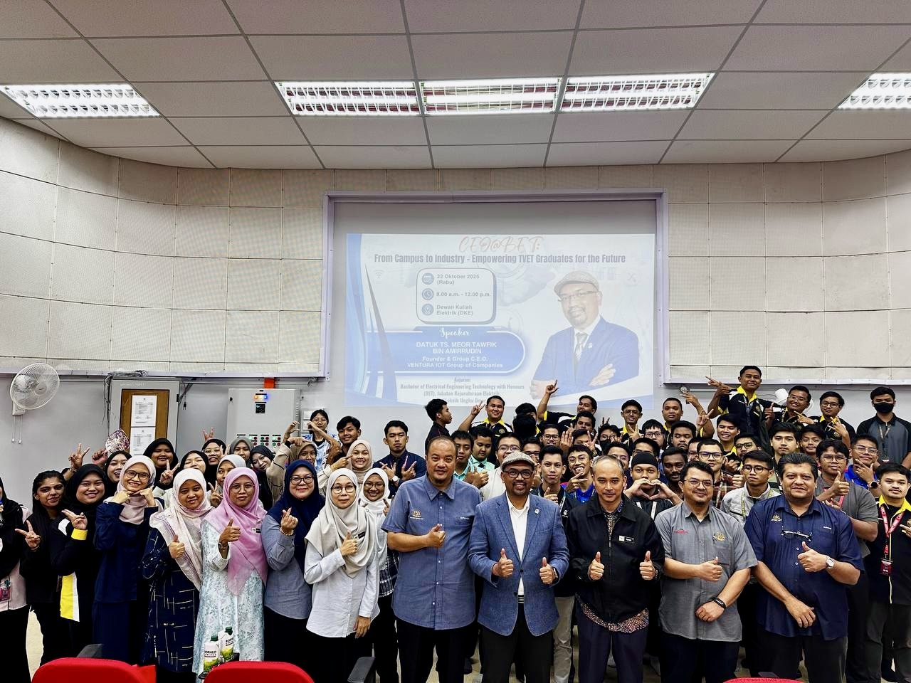 The event, titled “CEO@BET: From Campus to Industry – Empowering TVET Graduates for the Future,” was organised by the Department of Electrical Engineering (JKE) through the Bachelor of Electrical Engineering Technology with Honours (BET) programme.
